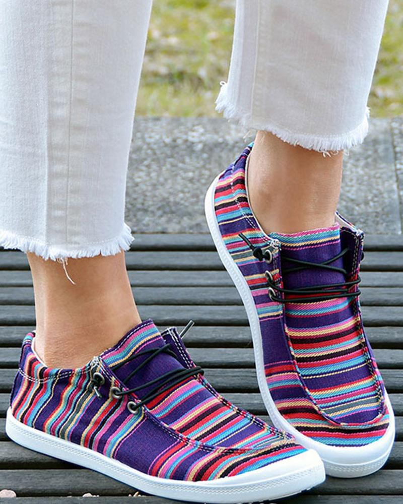 Style:Chic Type:Slip-On Material:Canvas Pattern Type:Striped Decoration:Lace-up Occasion:Daily Toe:Round Toe Heel Height:Flat Package Include:1*Slip-On