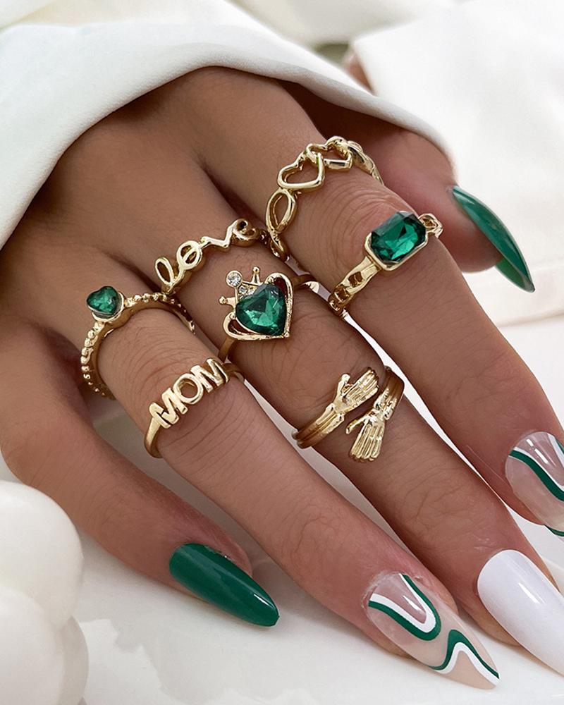7pcs Mom Letter Gem Stone Love Heart Stackable Opening Rings Set