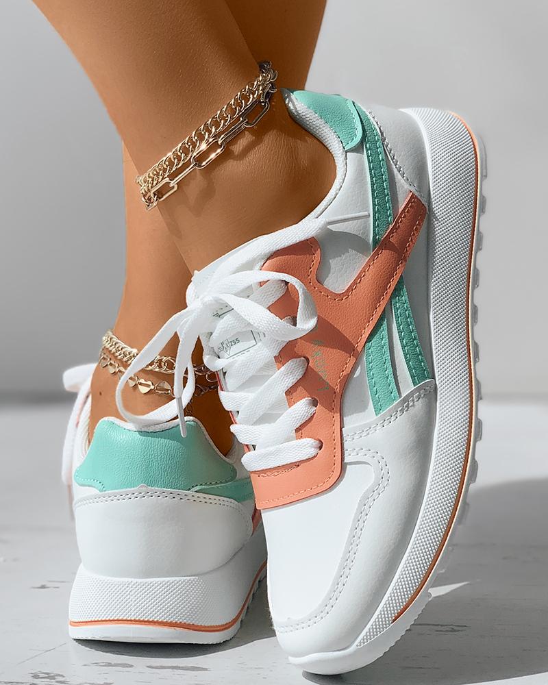 Style:Casual,Chic Type:Sneakers Material:PU Pattern Type:Colorblock,Contrast Paneled,Letter Decoration:Lace-up Occasion:Daily Toe:Round Toe Heel Height:Flat Package Include:1*Sneakers