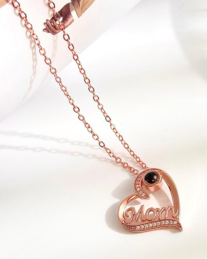 1pc Mother's Day Fashion Charms Gift Hollow Out Heart Rhinestone Letter Mom Pendant Necklace