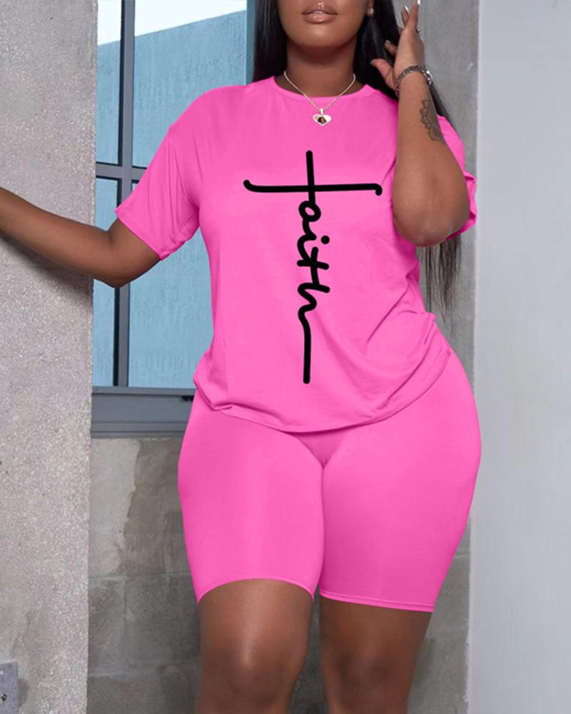 Style:Basics,Casual Type:Shorts Set Material:Polyester Neckline:O-neck Sleeve Style:Short Sleeve Length:Above Knee Pattern Type:Letter Fit Type:Regular Occasion:Daily Package Include:1*Shorts Set