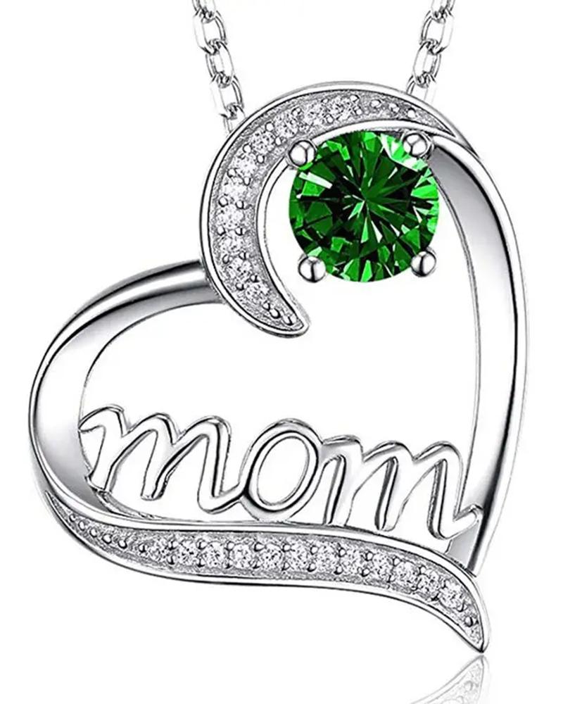 1pc Mother's Day Fashion Charms Gift Hollow Out Heart Gemstone Letter Mom Pendant Necklace
