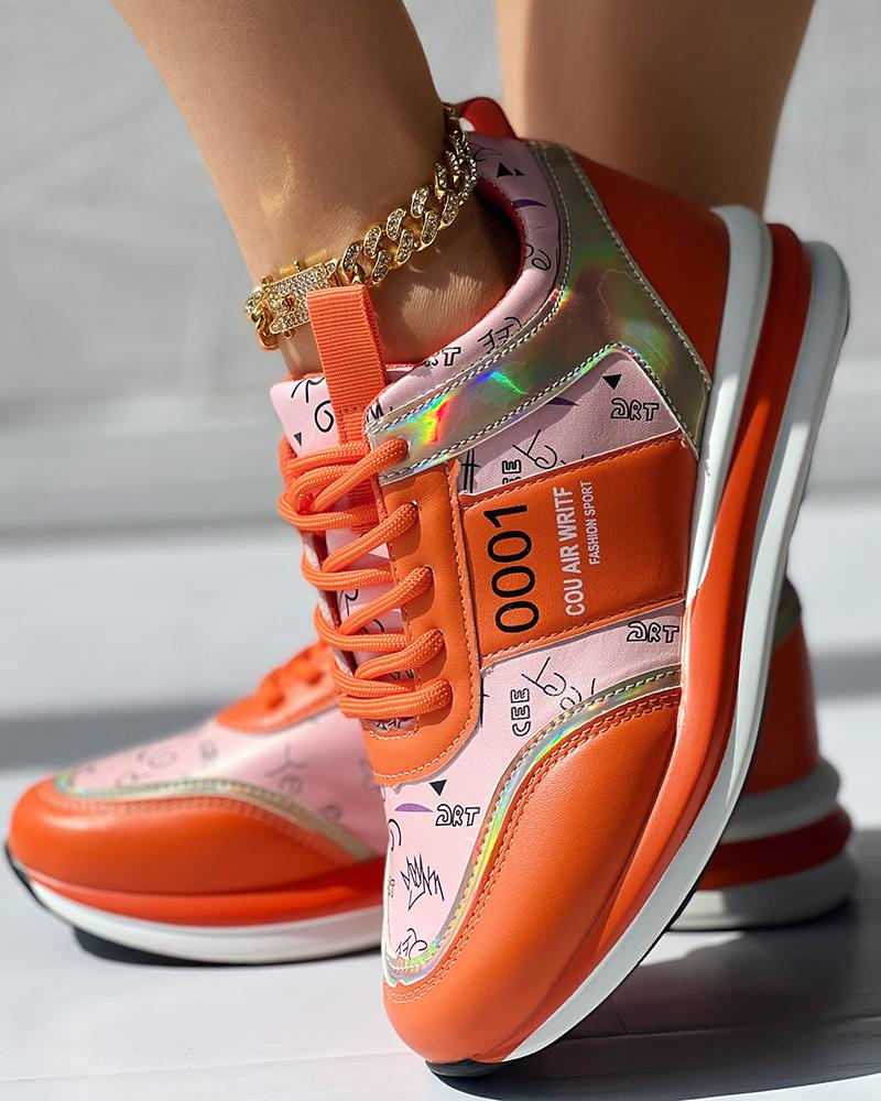 Style:Casual,Chic Type:Sneakers Material:PU Pattern Type:Graphic,Letter Decoration:Lace-up Occasion:Daily Toe:Round Toe Heel Height:Flat Package Include:1*Sneakers