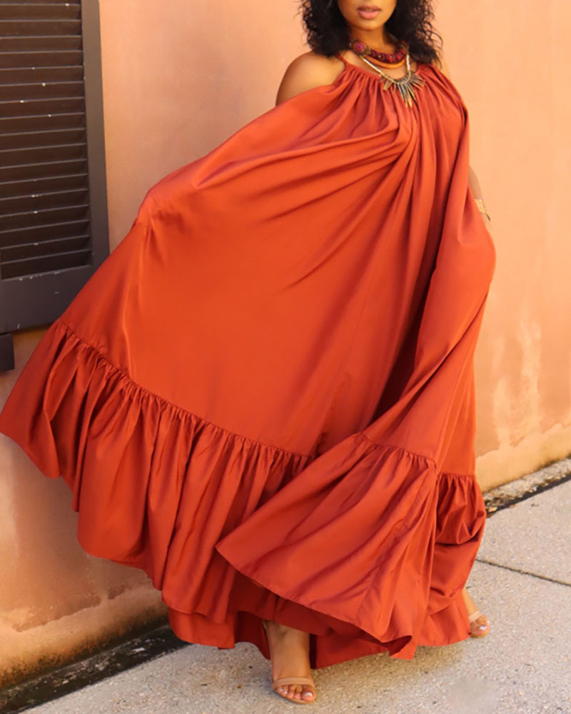 Style:Casual Type:A Line Material:Polyester Neckline:V-Neck Sleeve Style:Spaghetti Strap Length:Maxi Pattern Type:Plain Decoration:Ruched,Ruffles Fit Type:Regular Occasion:Daily Package Include:1*Dress Fabric Elasticity:Slight Stretch Sheer:No Care Instructions:Machine wash or professional dry clean