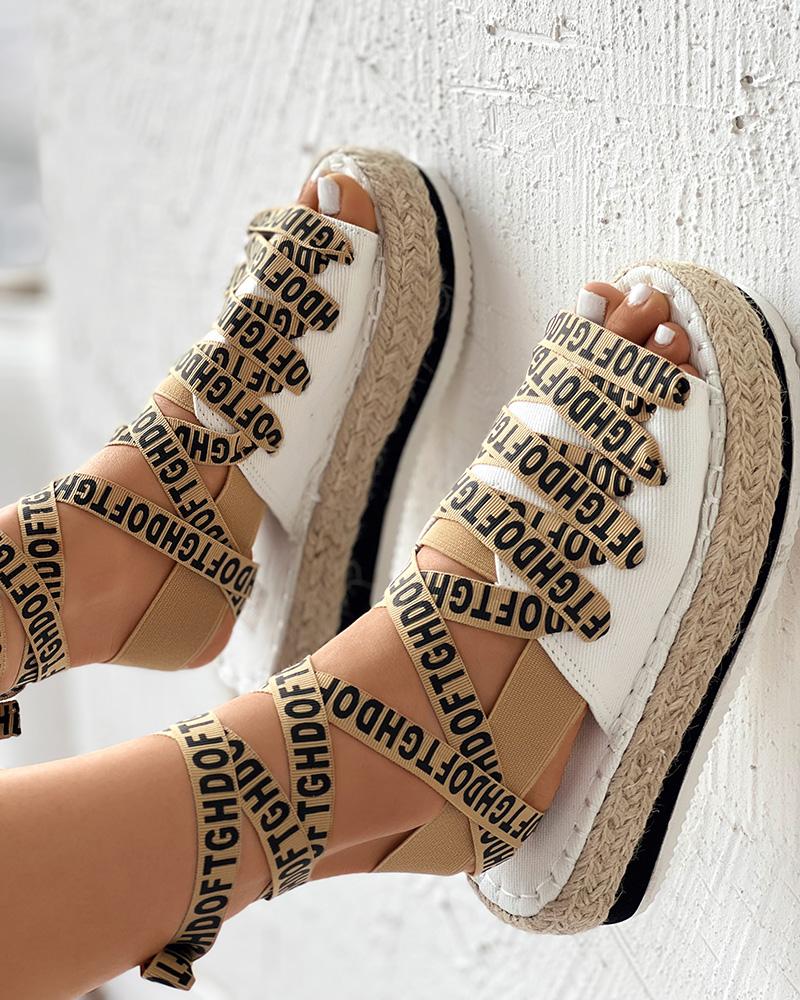 Letter Band Lace-up Platform Peep Toe Strappy Sandals