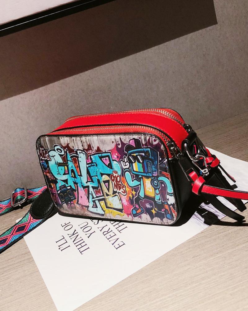 Cartoon Letter Graphic Zipper Design Shoulder Bag