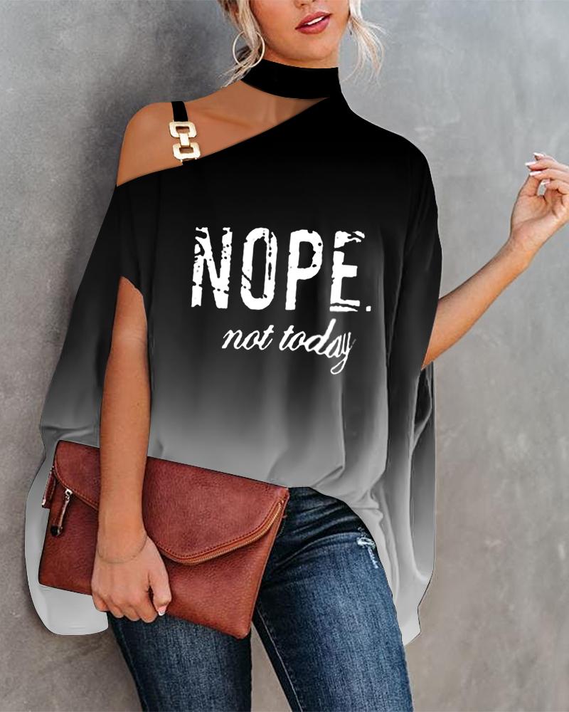 Nope Not Today Ombre Print Chain Strap Cold Shoulder Top