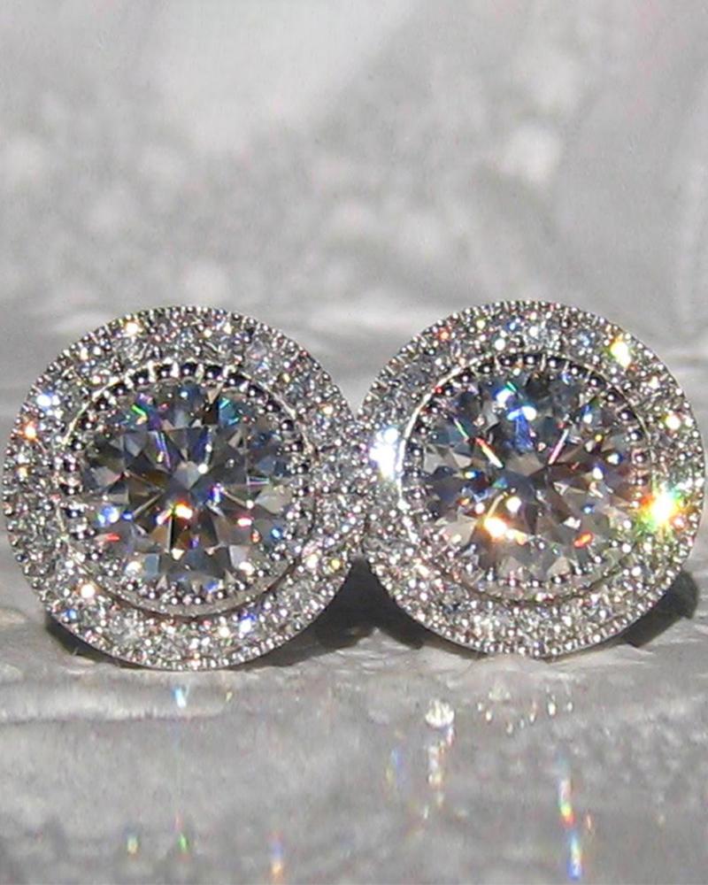 1Pair Round Cut Rhinestone Zircon Earrings