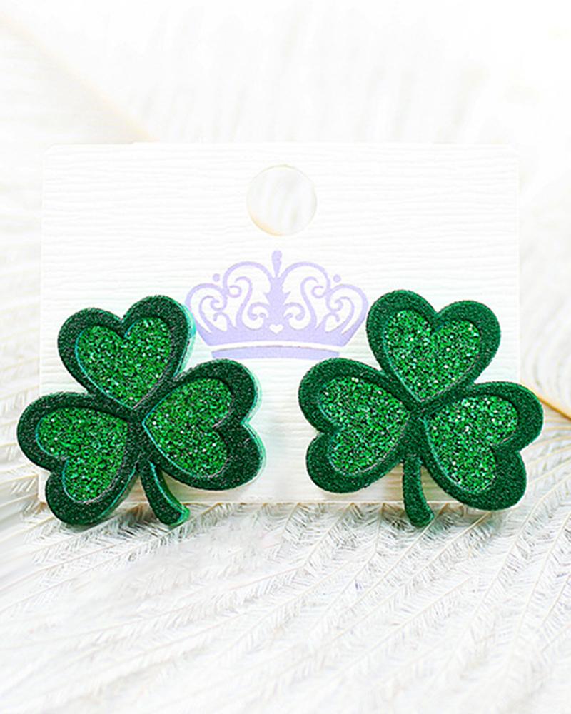1Pair St. Patrick's Day Glitter Clover-shaped Earrings