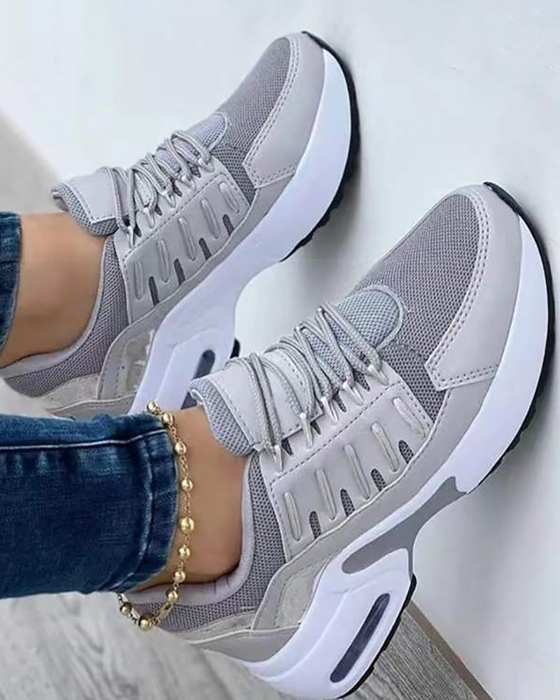 Style:Casual,Chic Type:Sneakers Material:Rib-Knit,PU Pattern Type:Contrast Paneled Decoration:Lace-up Occasion:Daily Toe:Round Toe Heel Height:Flat Package Include:1*Sneakers