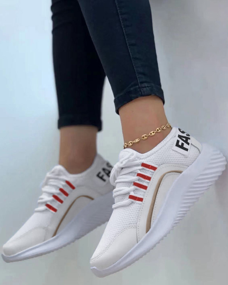 Style:Chic Type:Sneakers Material:Rib-Knit Pattern Type:Letter Decoration:Lace-up Occasion:Daily Toe:Round Toe Heel Height:Flat Package Include:1*Sneakers