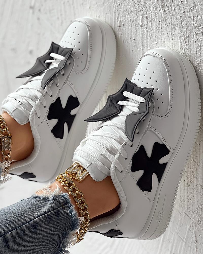 Star Pattern Lace-up Muffin Sneakers