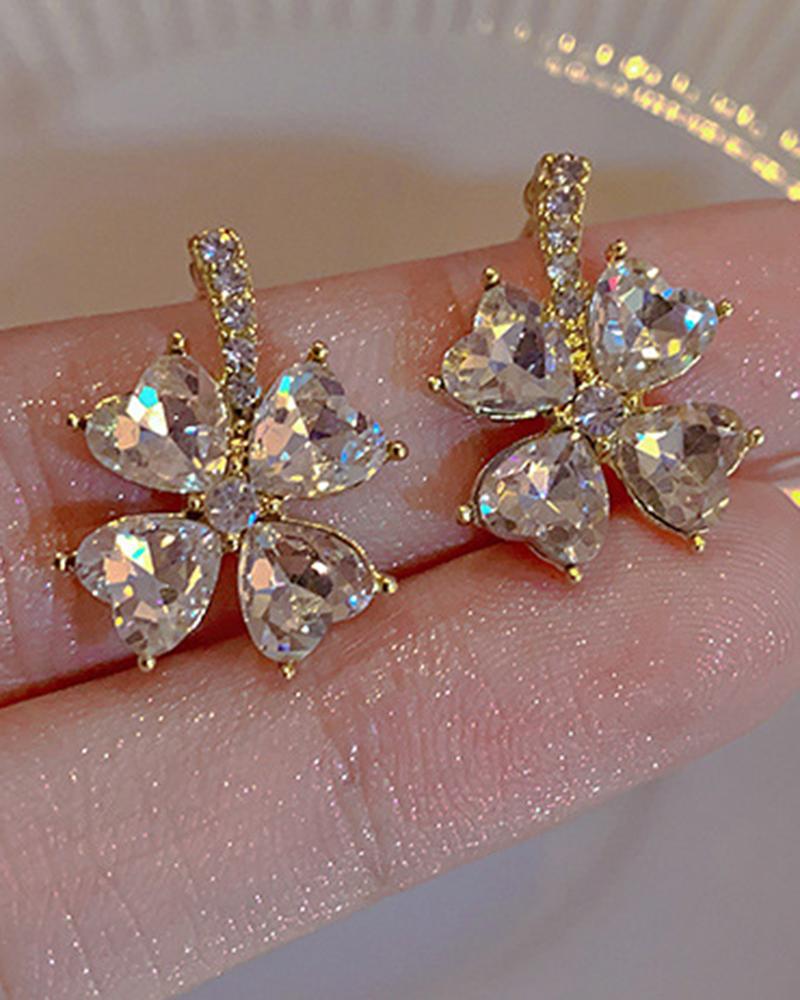 1Pair Rhinestone Heart-shaped Clover Earrings