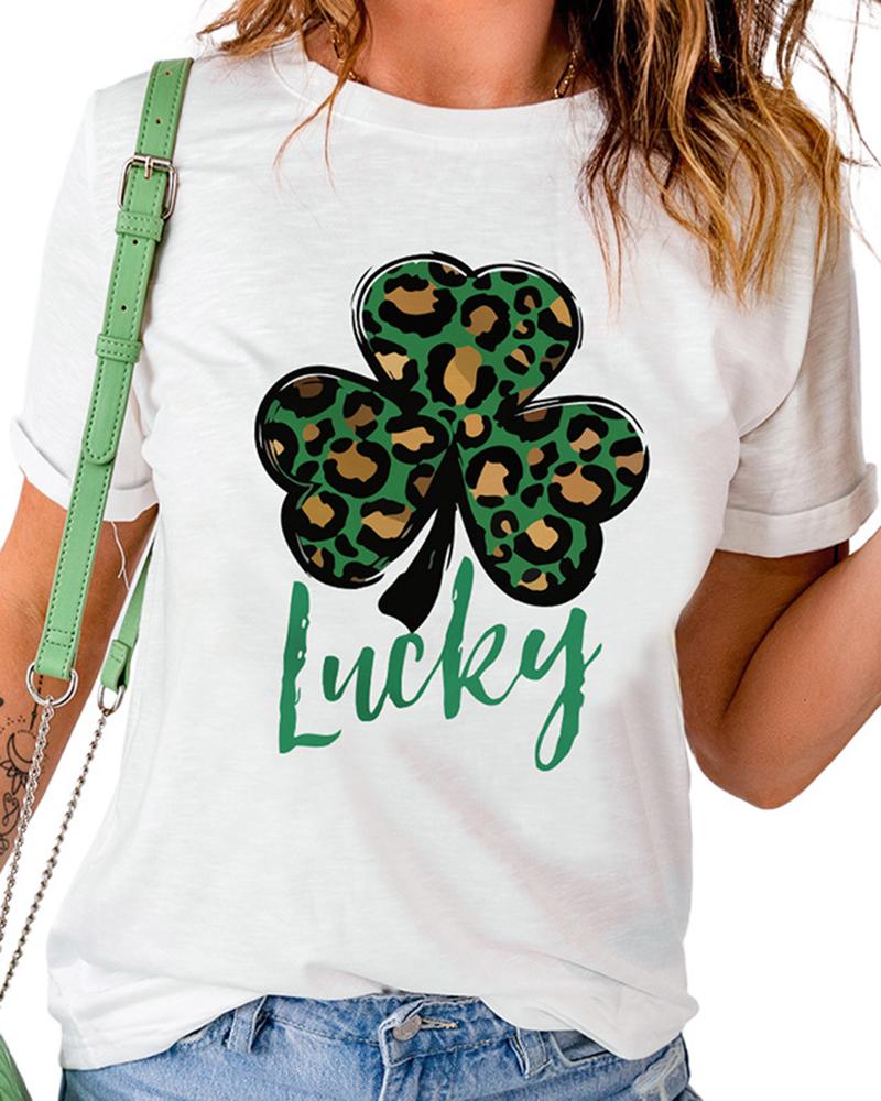 St. Patrick's Day Letter Clover Print Casual T-shirt