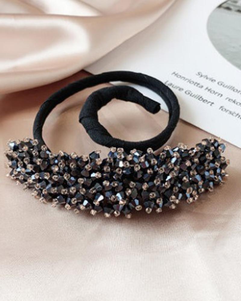 1pc Colorblock Crystal Beaded Hair Bun Maker
