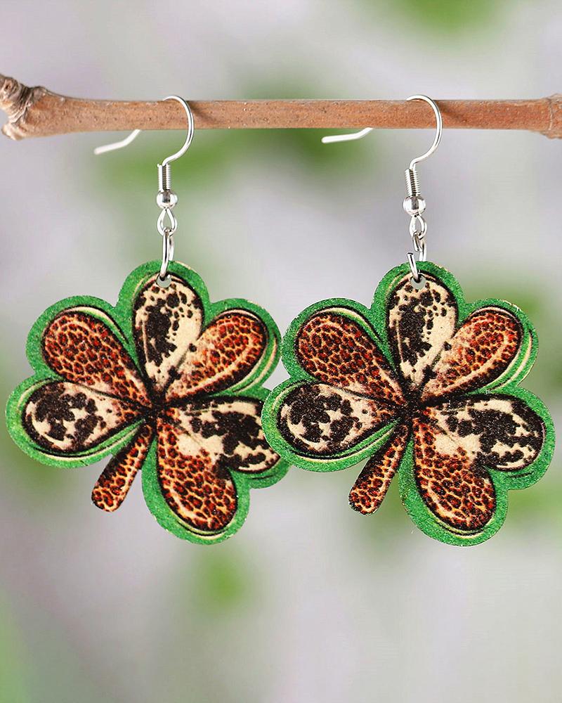 1Pair St. Patrick's Day Green Clover Leopard Earrings
