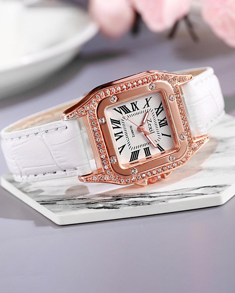 2pcs Rhinestone Decor Quartz Watch & Chain Bracelet Set