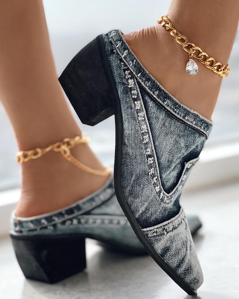 Chunky Heel Denim Mules