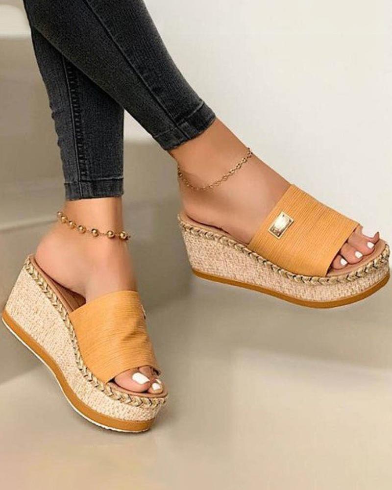 Style:Casual Type:Wedge Shoes Material:PU,Canvas Pattern Type:Plain Occasion:Daily Toe:Open Toe Heel Height:High Heel Package Include:1*Sandals