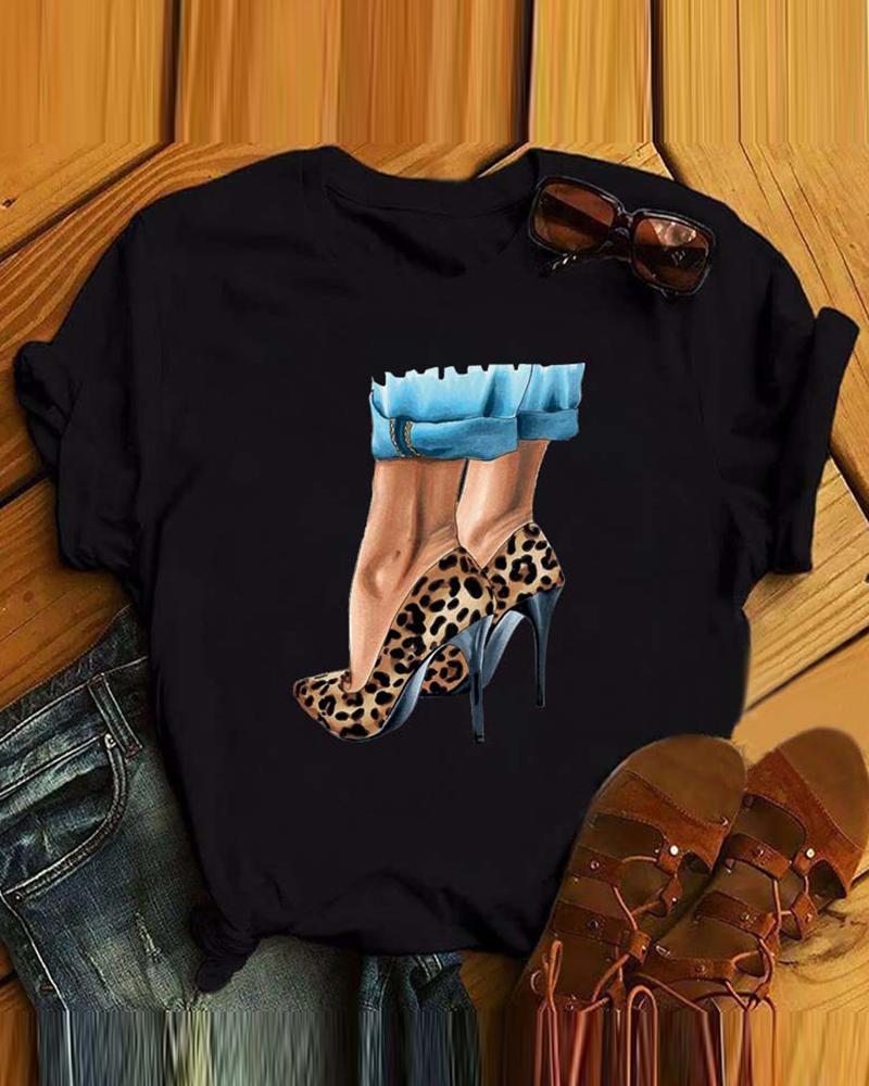 Style:Casual,Chic Type:Regular Material:Polyester Neckline:Round Neck Sleeve Style:Short Sleeve Length:Regular Pattern Type:Graphic,Leopard Fit Type:Regular Occasion:Daily Package Include:1*T-Shirt