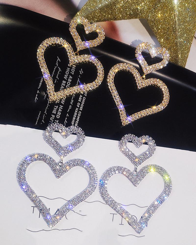 1Pair Heart Pattern Square Pendant Rhinestone Earrings