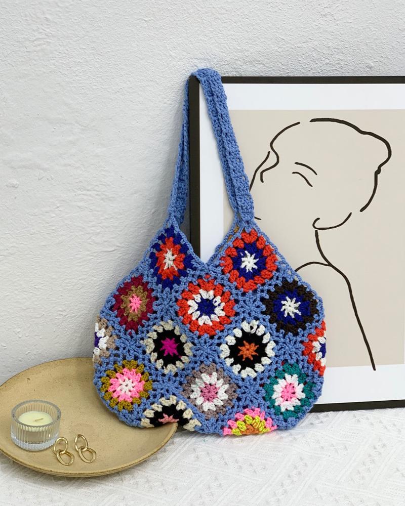 Floral Pattern Crochet Bag