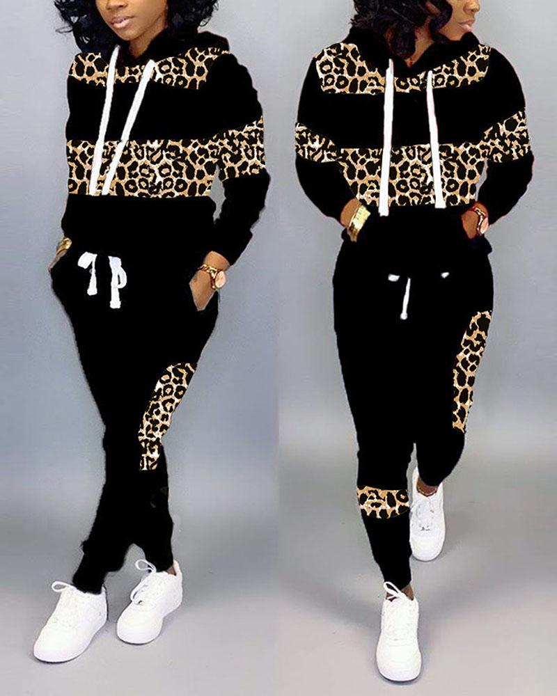 Style:Casual,Sporty Type:Sweatpants Sets,Sweatshirt Sets Material:Polyester Neckline:Hooded Sleeve Style:Long Sleeve Length:Long Pattern Type:Leopard Decoration:Drawstring,Pocket Fit Type:Regular Occasion:Daily Package Include:1*Pants Set