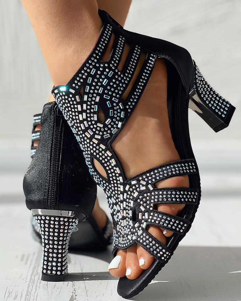 Style:Chic Type:Heeled-Sandals Pattern Type:Contrast Paneled Decoration:Rhinestone Occasion:Party,Wedding Guest Toe:Peep Toe Heel Height:Low Heel Package Include:1*Heels