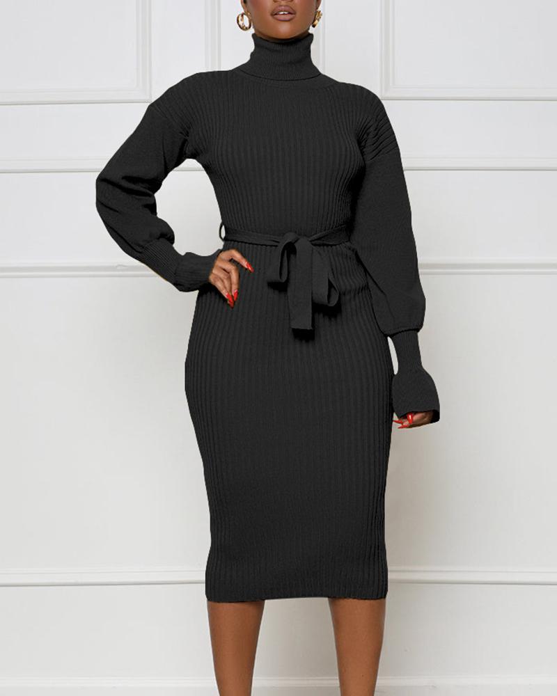 Style:Chic Type:Pencil Material:Acrylic Neckline:High Neck Sleeve Style:Long Sleeve Length:Mid-Calf Pattern Type:Plain Fit Type:Regular Occasion:Daily Package Include:1* Dress