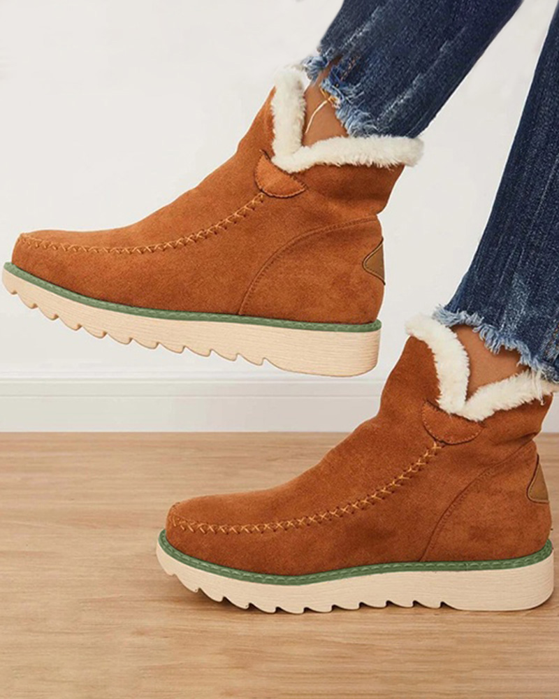 Style:Chic Type:Boots Pattern Type:Contrast Paneled Occasion:Daily Toe:Round Toe Heel Height:Flat Package Include:1*Boots