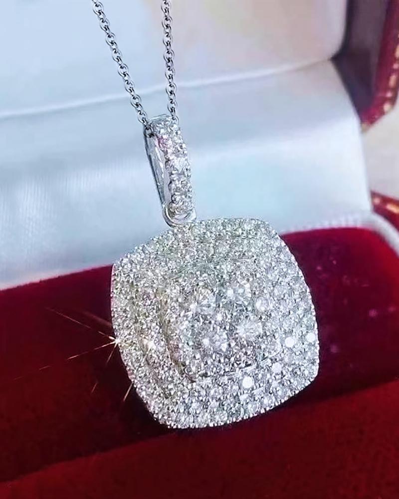Allover Rhinestone Square Shaped Pendant Chain Necklace