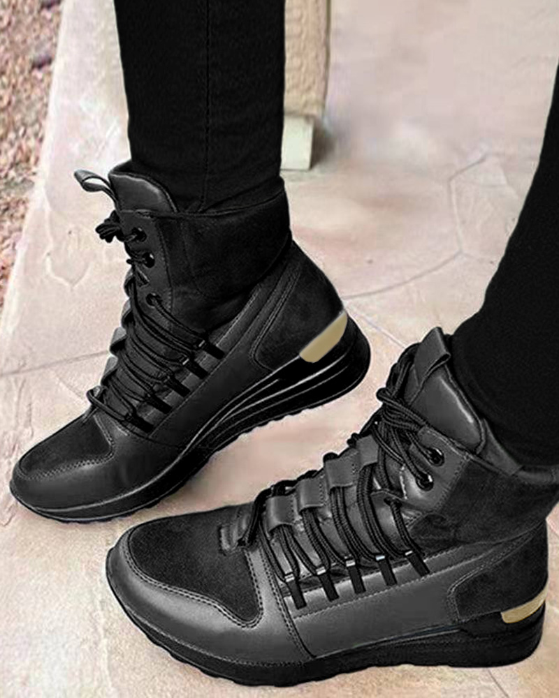 Style:Casual Type:Boots Pattern Type:Contrast Paneled Occasion:Daily Toe:Round Toe Heel Height:Low Heel Package Include:1*Boots