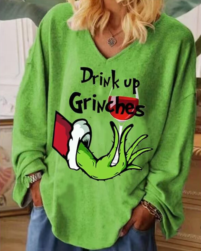 Plus Size Graphic Stole Christmas Print Long Sleeve Top