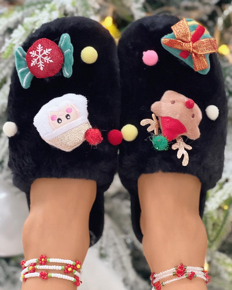 Style:Casual,Chic Type:Slippers Pattern Type:Cartoon,Graphic Decoration:Pom Pom Occasion:Christmas Toe:Round Toe Heel Height:Flat Package Include:1*Slippers
