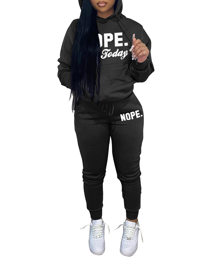 Style:Casual,Chic Type:Sweatpants Sets,Sweatshirt Sets Material:Polyester Neckline:Hooded Sleeve Style:Long Sleeve Length:Long Pattern Type:Letter Fit Type:Regular Occasion:Daily Package Include:Pants Sets
