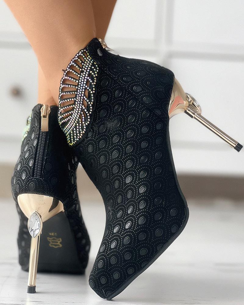 Graphic Rhinestone Decor Stiletto Heel Ankle Boots