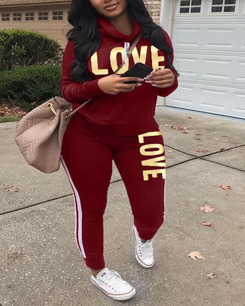 Style:Casual,Sporty Type:Sweatpants Sets,Sweatshirt Sets Material:Polyester Neckline:Hooded Sleeve Style:Long Sleeve Length:Long Pattern Type:Letter Fit Type:Regular Occasion:Daily Package Include:1*Pants Set