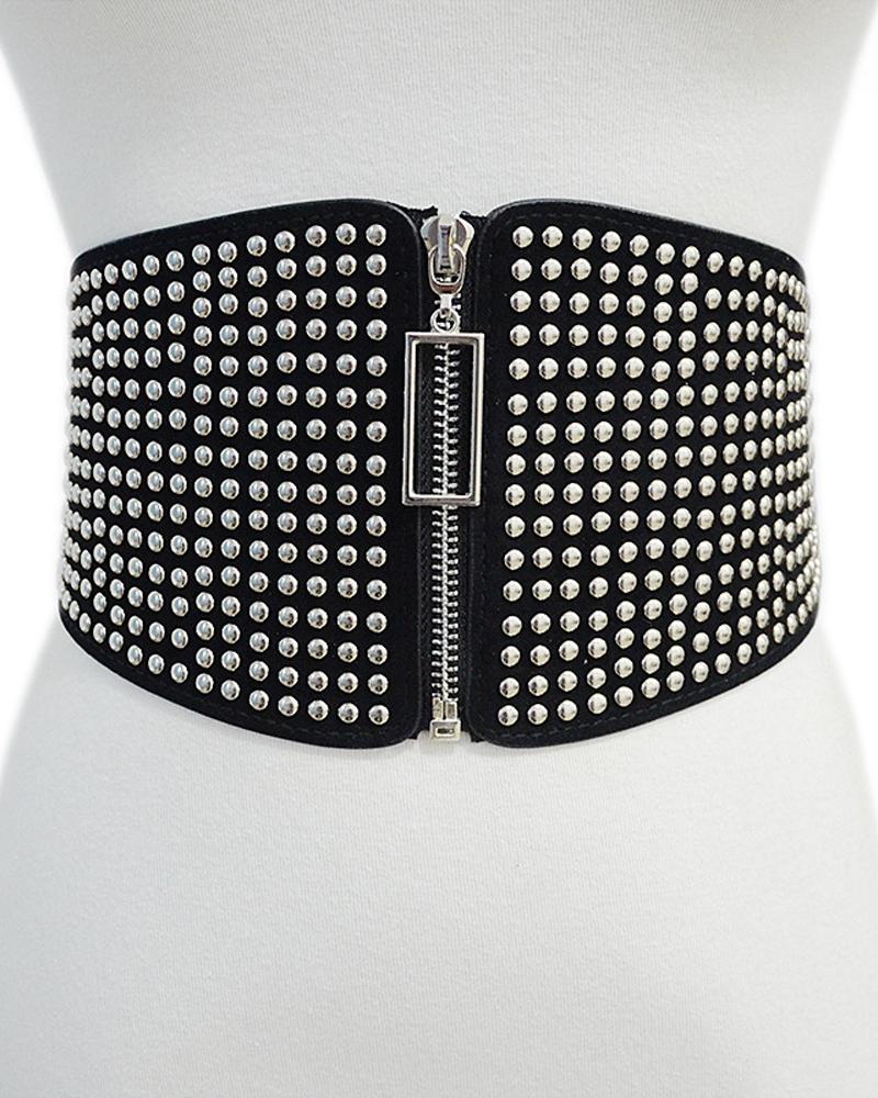 Style:Chic Pattern Type:Plain Decoration:Studded,Zipper Occasion:Daily,Night Out Package Include:1*Belt