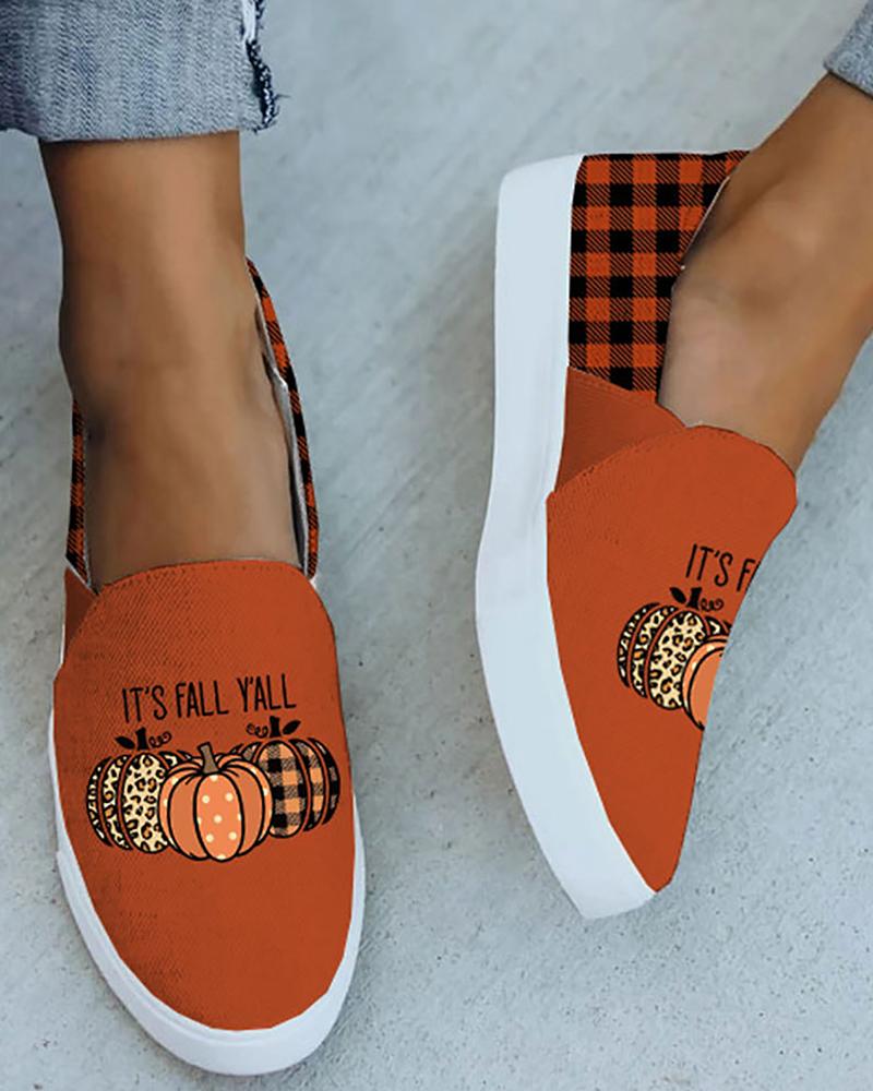Halloween Pumpkin Letter Plaid Print Slip On Sneakers