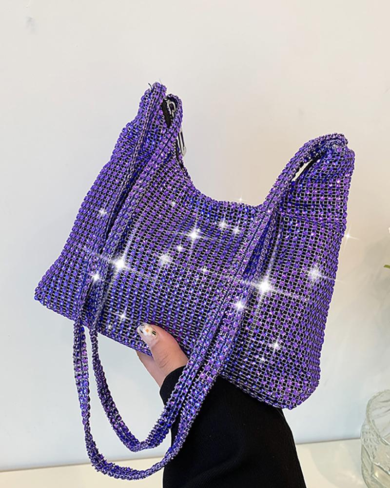 Style:Casual,Vintage Type:Shoulder Bag Material:PU Pattern Type:Plain,Ombre Decoration:Rhinestone Occasion:Night Out,Party,Evening Package Include:1*Bag SIZE: 20*13*7.5cm