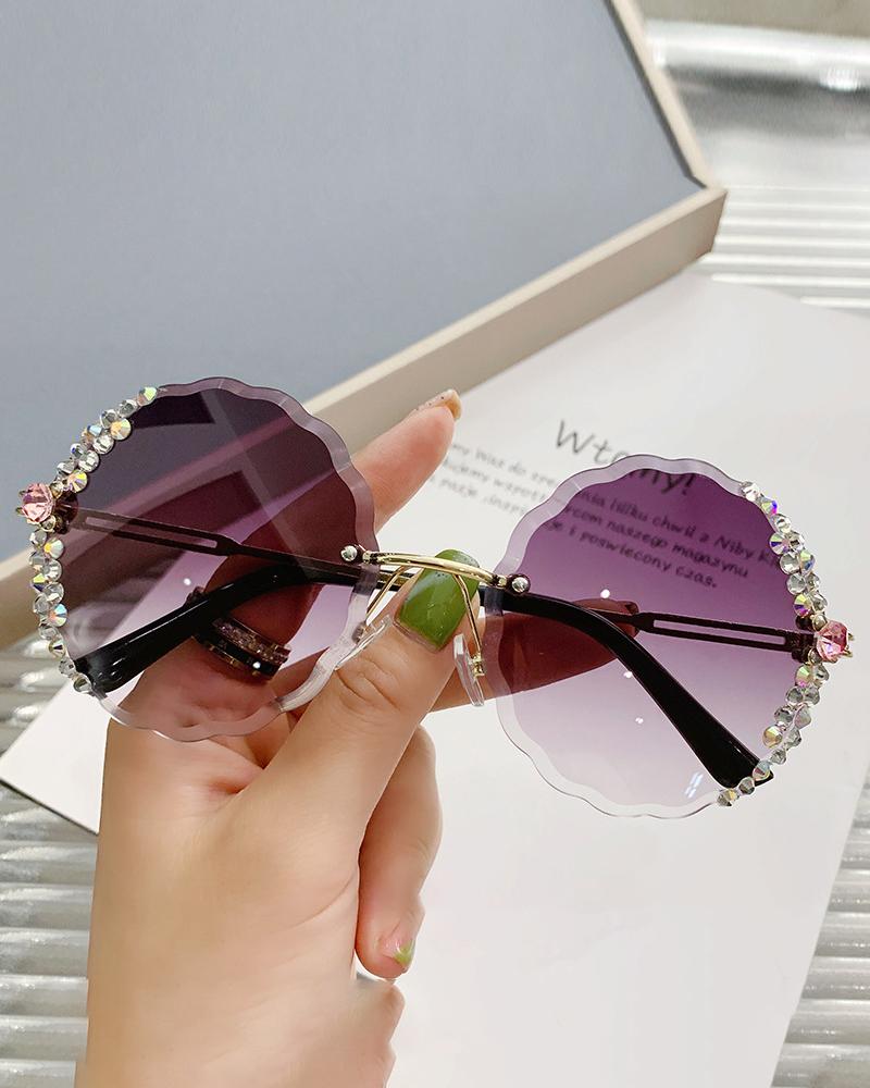 1Pair Rhinestone Tinted Lens Irregular Rimless Frame Sunglasses