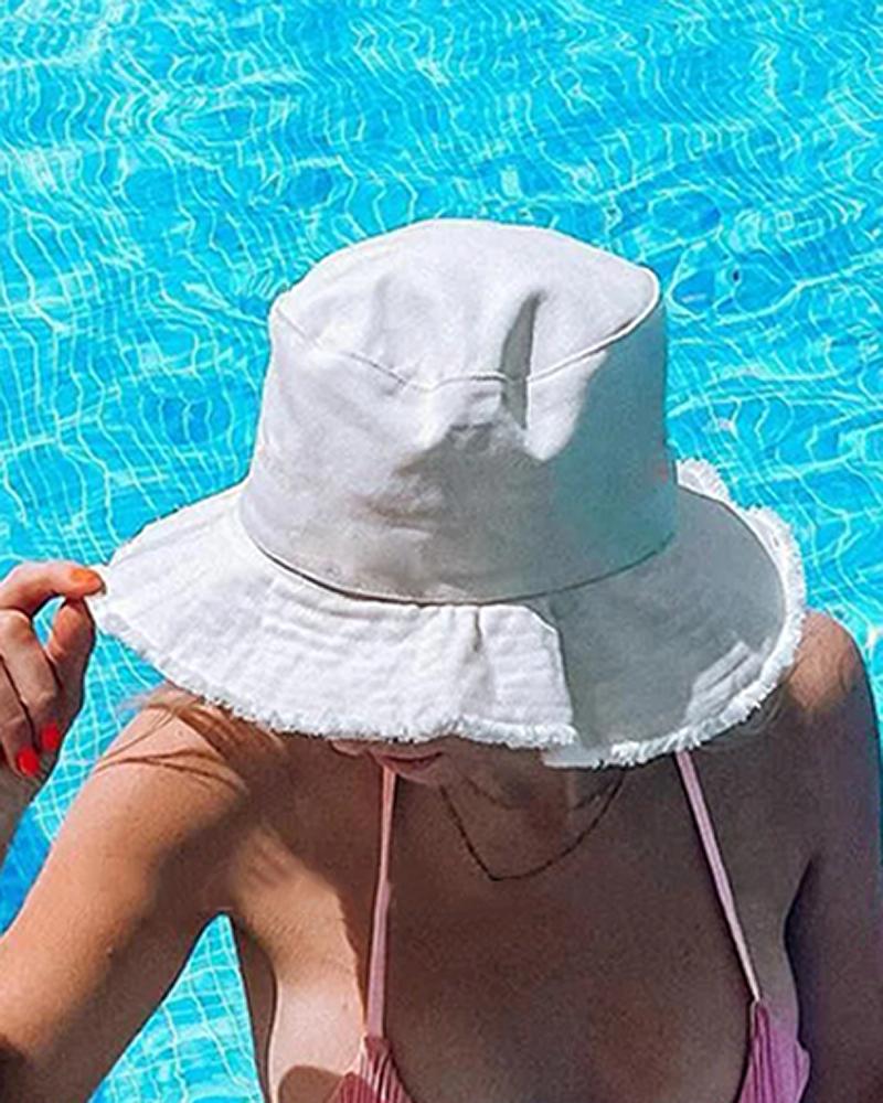Fringe Hem Wide Brim Sun Bucket Fishing Hat