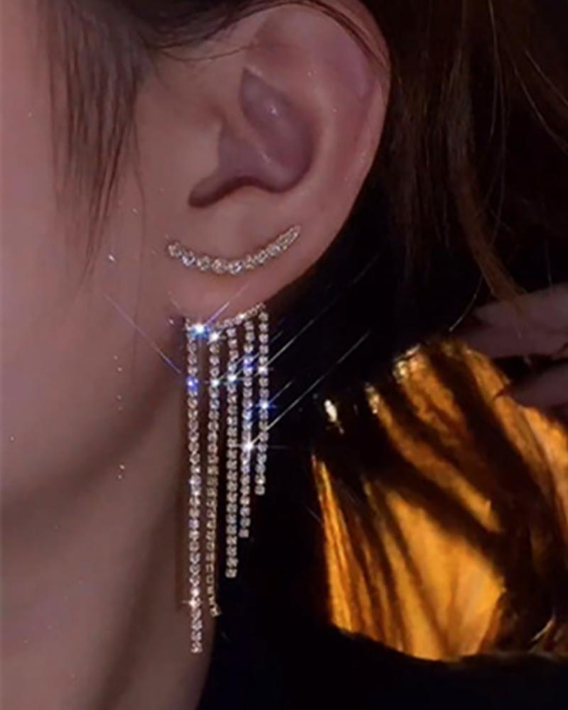 Style:Chic,Glamorous Type:Drop Earrings Material:Copper Decoration:Rhinestone Occasion:Daily,Night Out,Party Package Include:1Pair Earrings