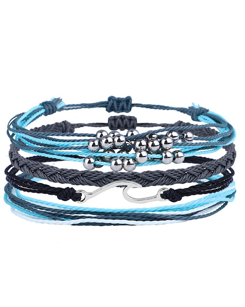 Style:Boho,Chic Type:Bracelet Material:Cotton Blends Pattern Type:Colorblock Decoration:Beaded Occasion:Vacation Package Include:4PCS Bracelets