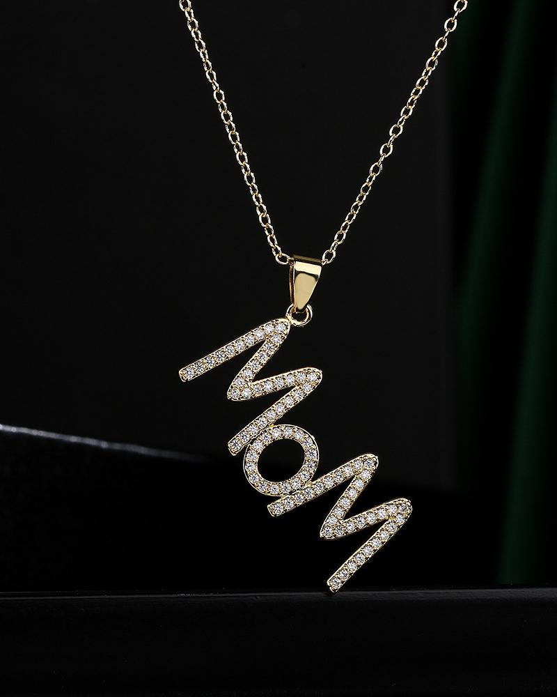 Mother's Day Rhinestone Letter Pendant Chain Necklace