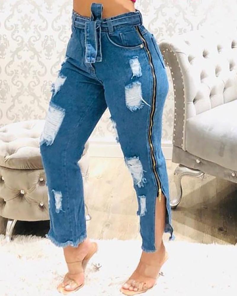Style:Chic,Denim Type:,Slit,Skinny Pants Material:Denim Length:Long Pattern Type:Plain Decoration:Pocket,Slit,Zipper,Button,Frill Hem,Ripped Fit Type:Skinny Occasion:Daily Package Include:1*Jeans