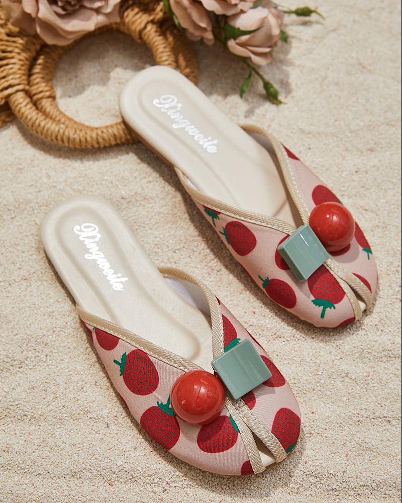 Style:Casual,Chic Type:Slippers Material:PU Pattern Type:Fruit & Vegetable,Geometric Occasion:Daily Toe:Peep Toe Heel Height:Flat Package Include:1* Slipper