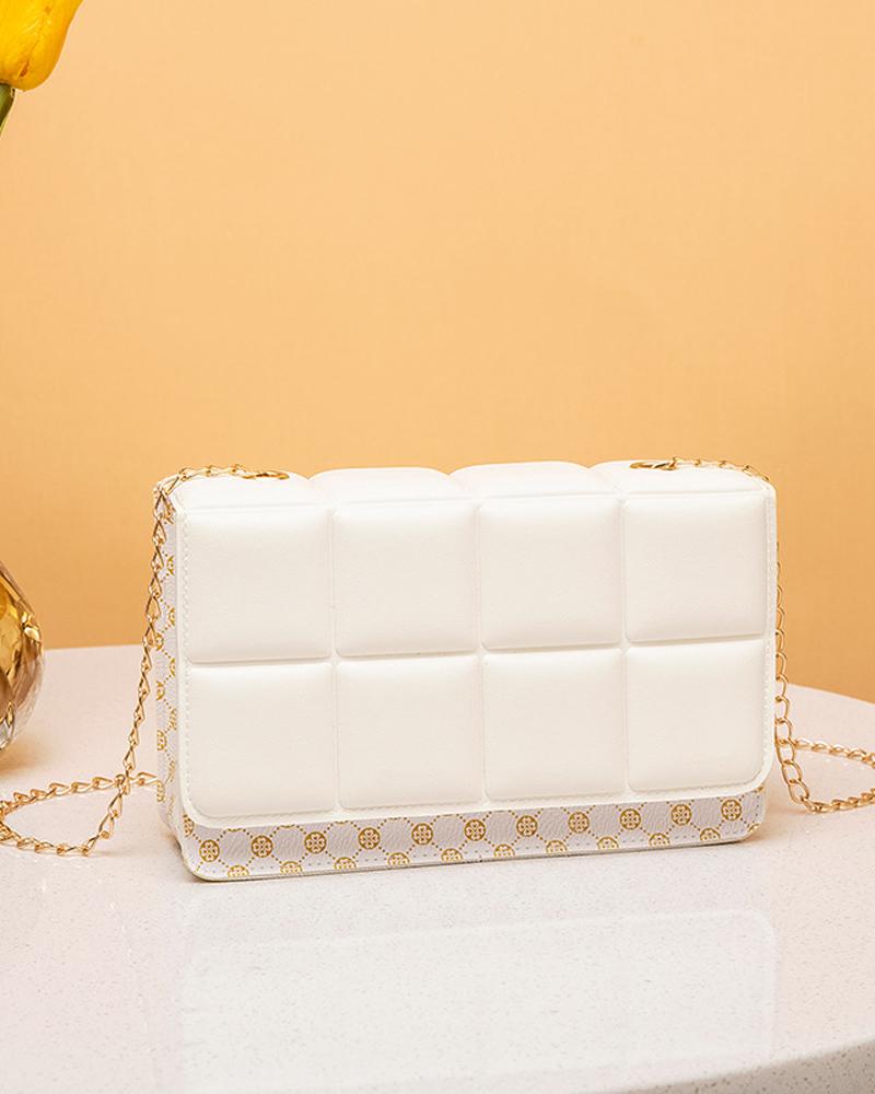 Clover Pattern Print Chain Strap Flap Shoulder Bag