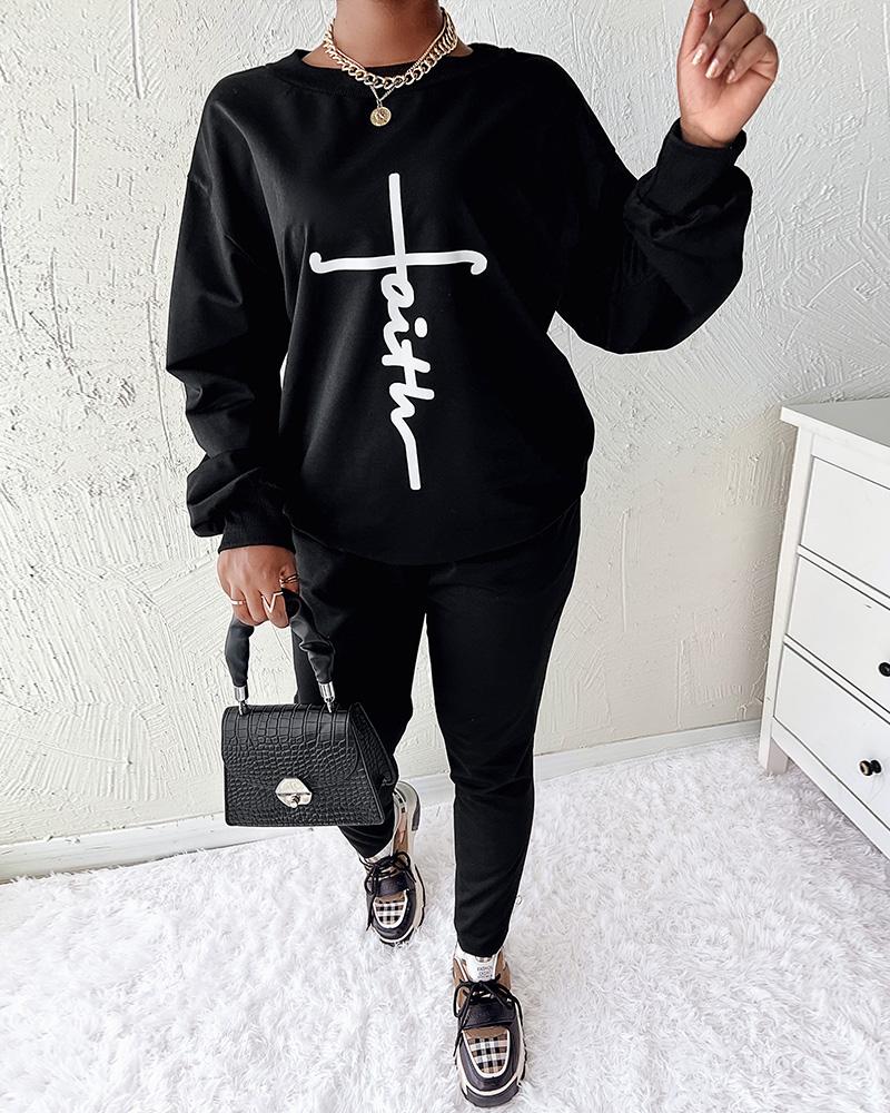 Letter Print Long Sleeve Sweatshirt & Pants Set