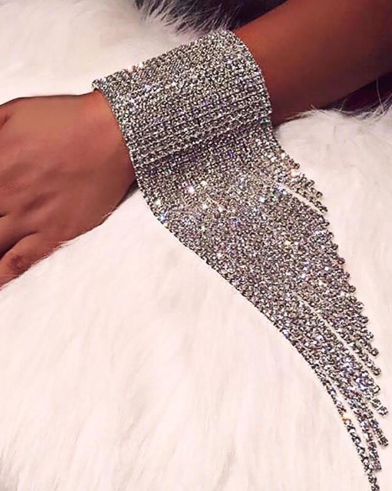 Style:Glamorous Type:Bracelet Material:Alloy Decoration:Rhinestone Occasion:Evening,Party,Night Out Package Include:1*Bracelet